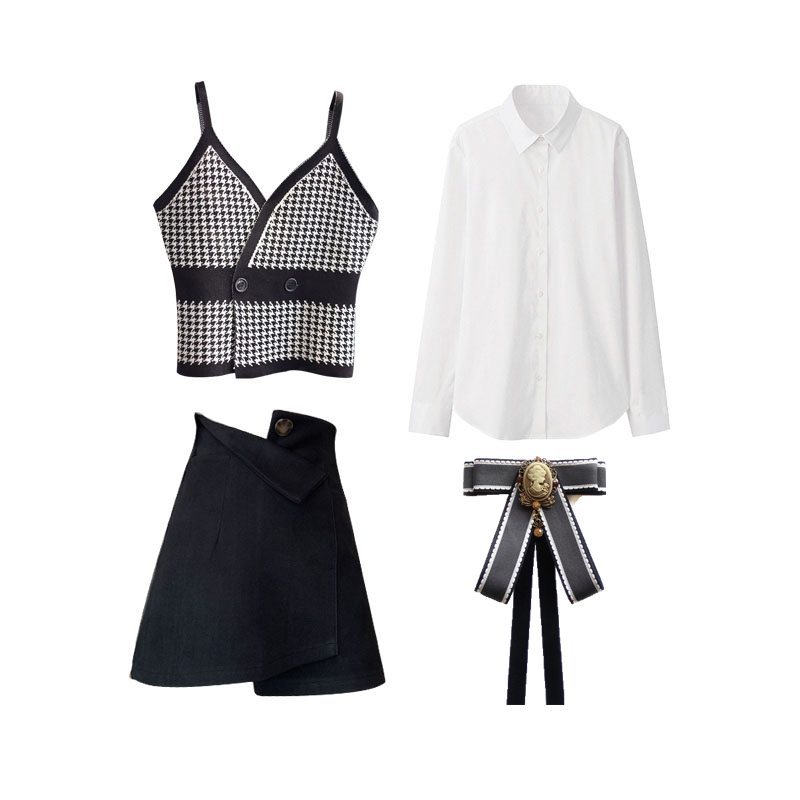 Vest Skirt Bow Tie Vest Skirt Shirt Vest Skirt Three Piece Bow Tie