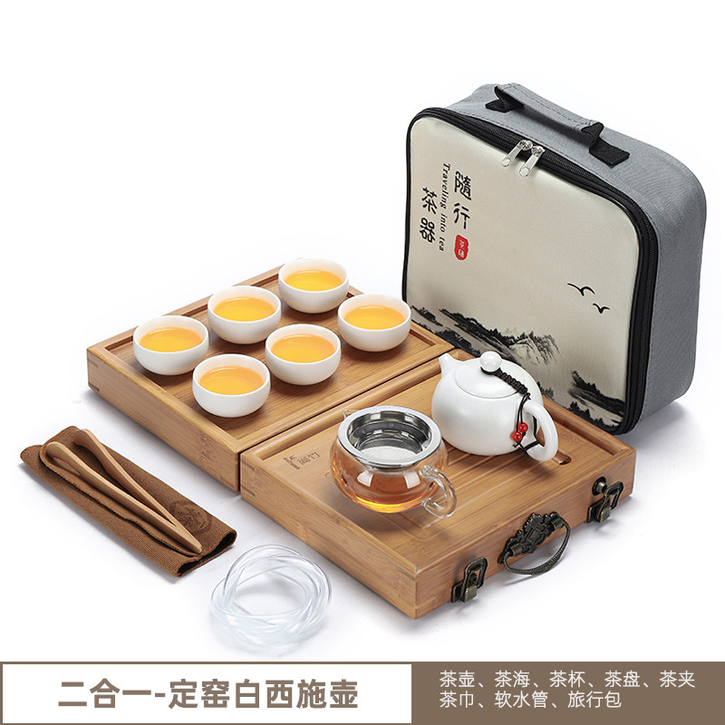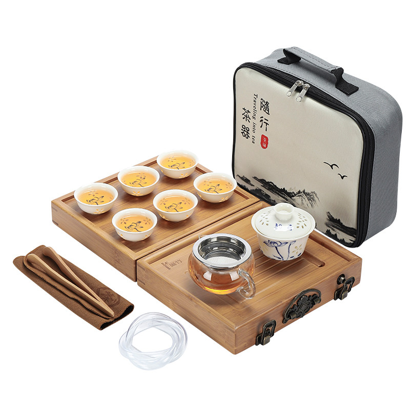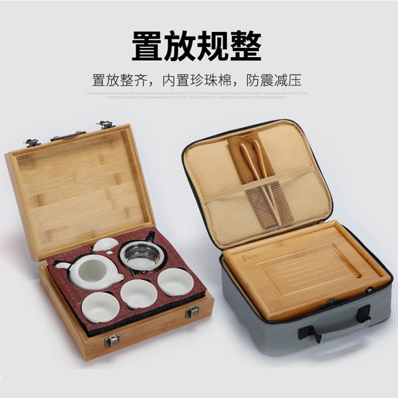 Portable Tea Set Travel Set Folding Kung Fu Tea Tray Small Bamboo Box Storage Bag Outdoor Teapot Tea Cup