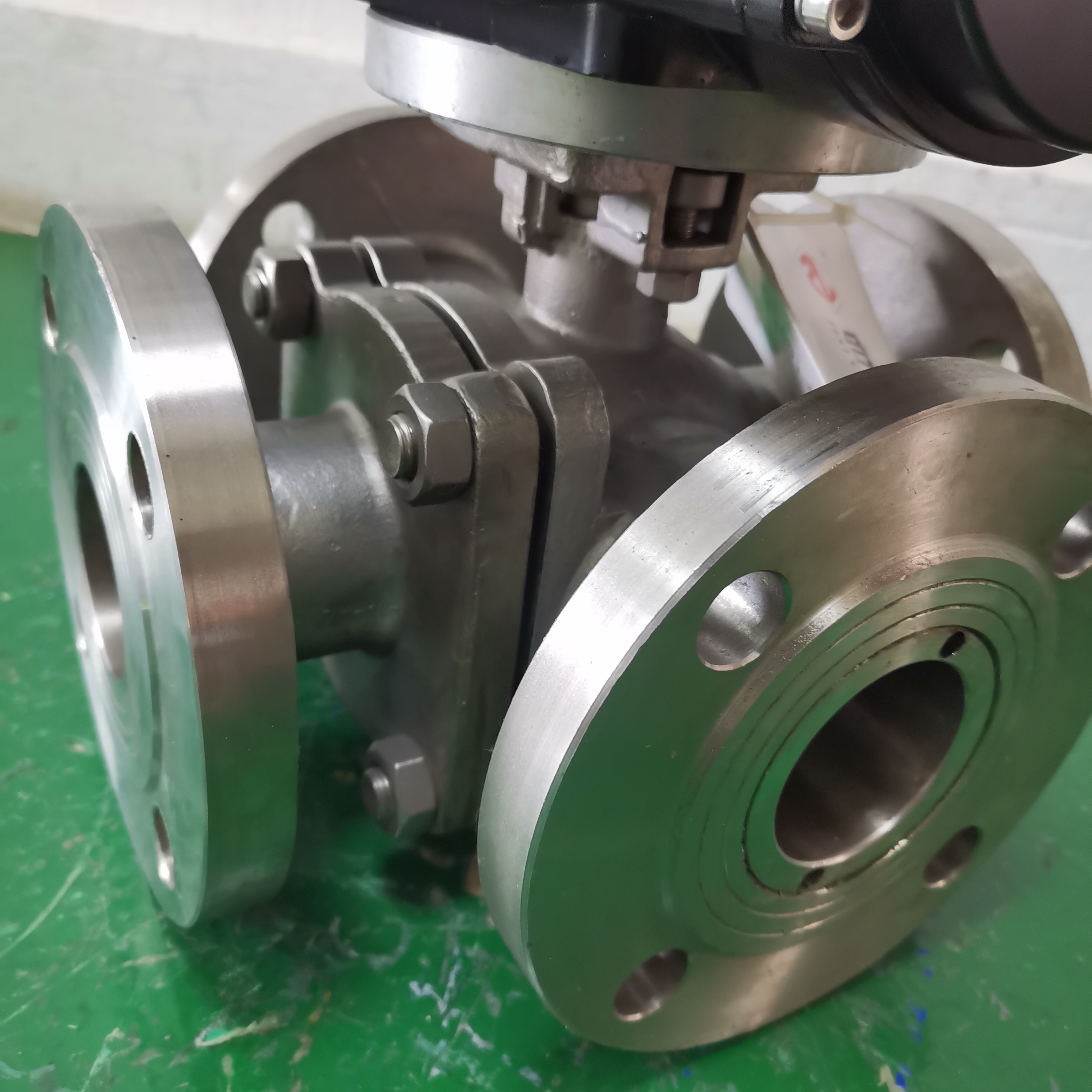 Electric four-way ball valve switching DN100 stainless steel flange double L shunt reversing steering switch valve Q946F