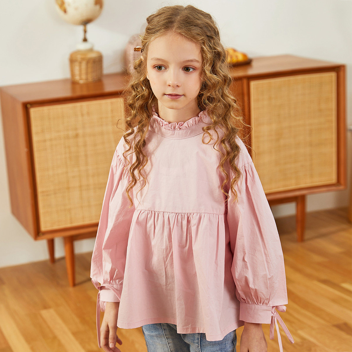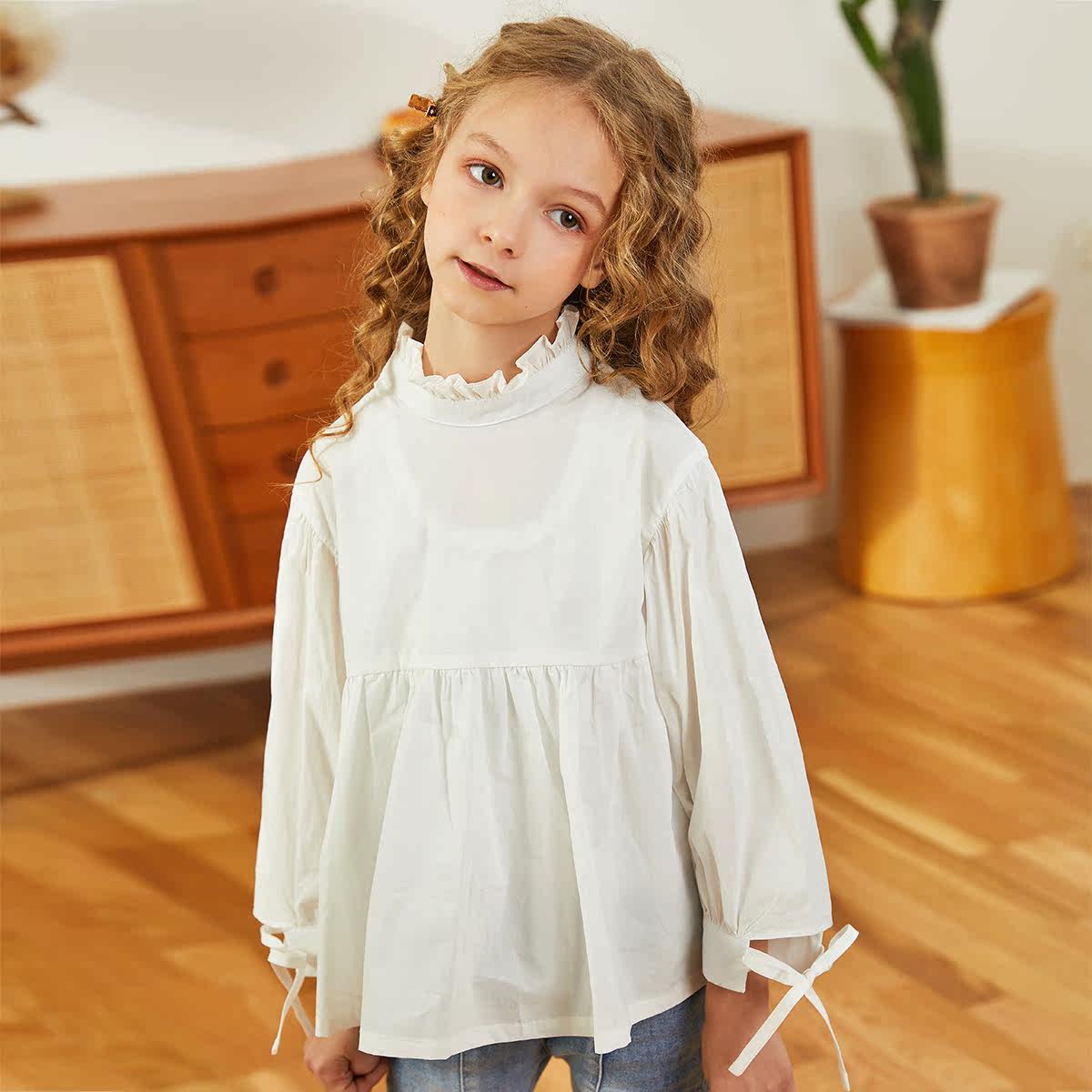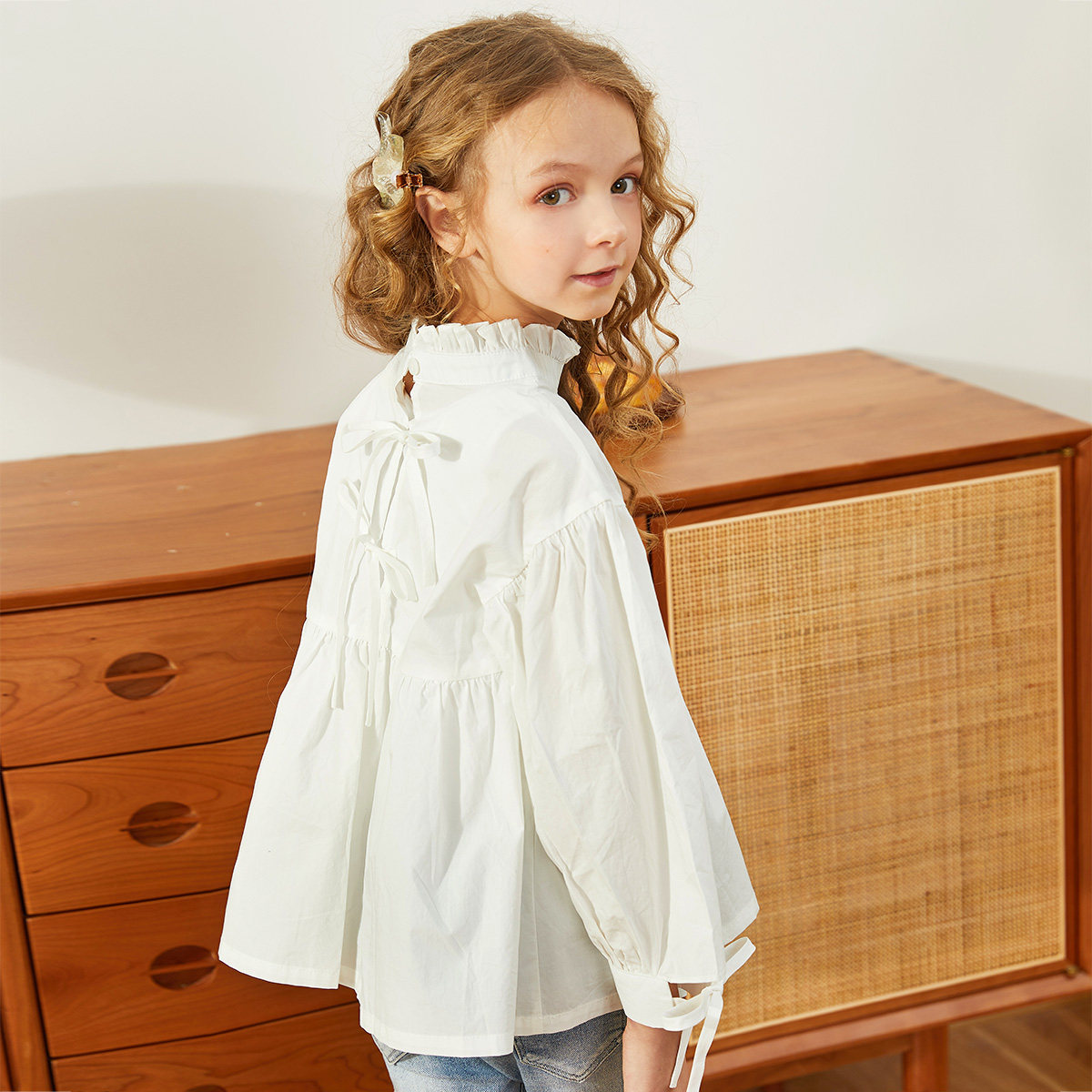Tiger Patti Girls Shirt Pure cotton Princess Children's shirt Stand collar long sleeve Spring top 2020 Korean version of the foreign school