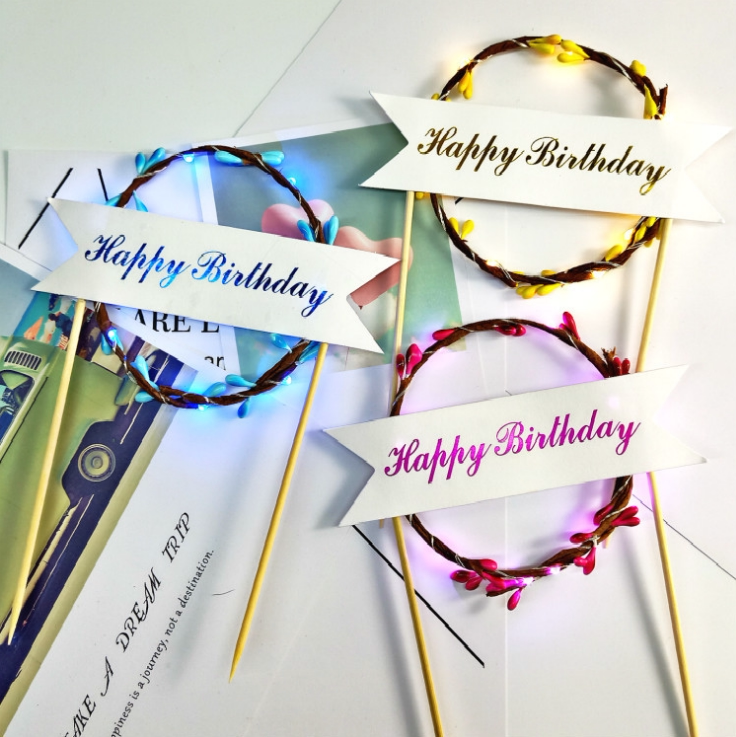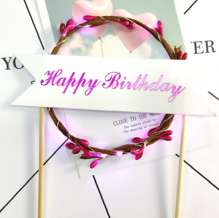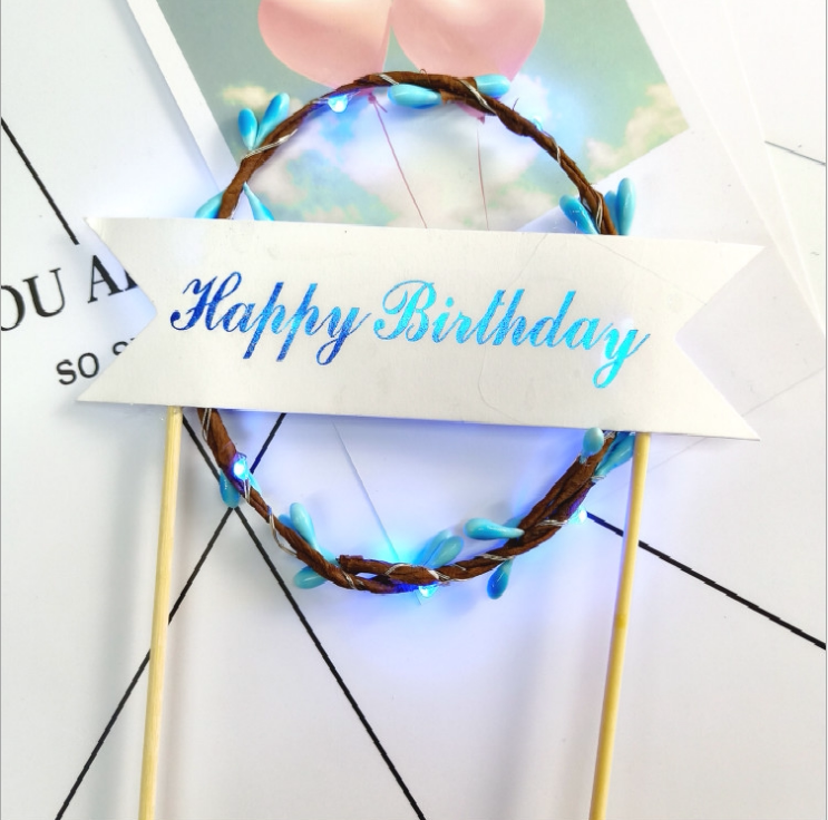 Lamp Garland Cake Decoration Birthday Cake Party LED Luminous Lamp Rattan Insert Dessert Table Garland Flag