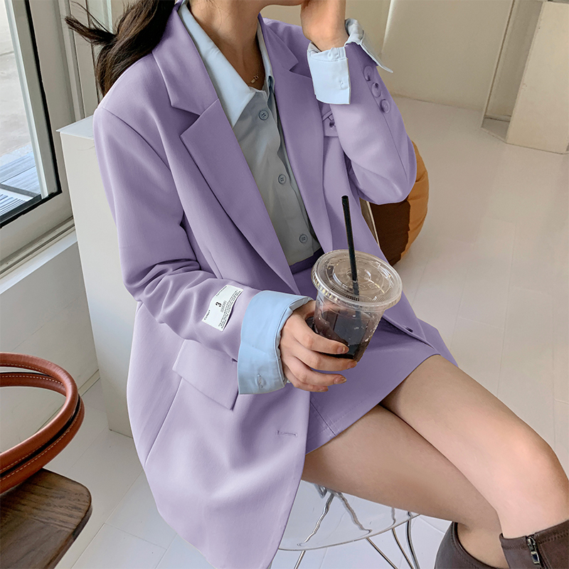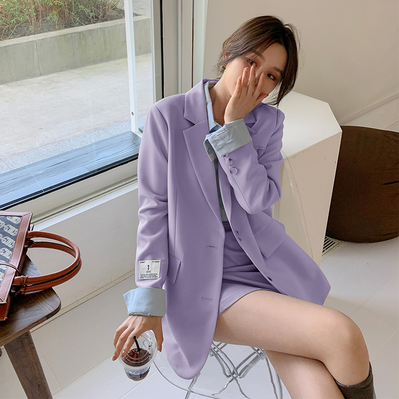 Autumn new Korean version loose British style purple small suit jacket women's design sense niche thin suit top