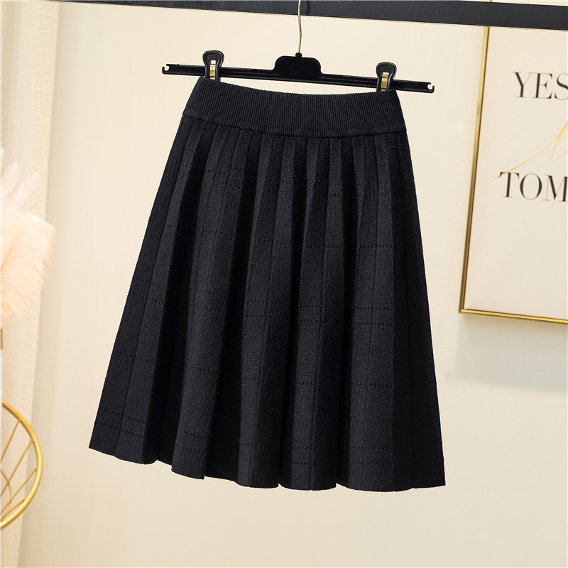 Skirt Women's autumn and winter short knitted pleated skirt high waist A-line autumn black thin skirt student wool skirt