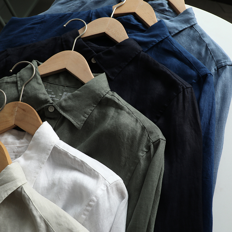 The Way of Nature Heavy Recommended Daily Single | Hen Men French Pure Linen Lapel Long Sleeve Shirt