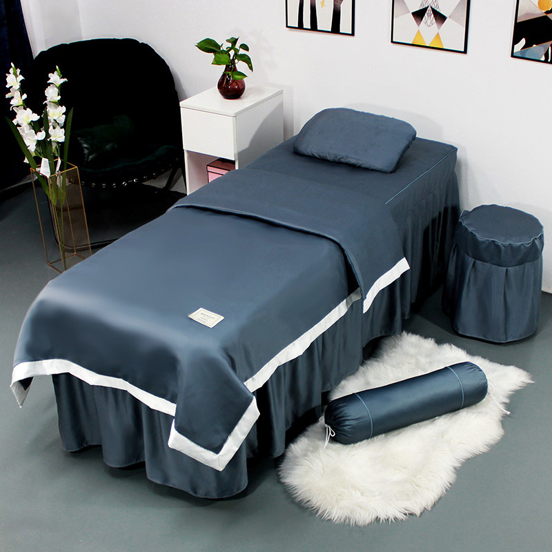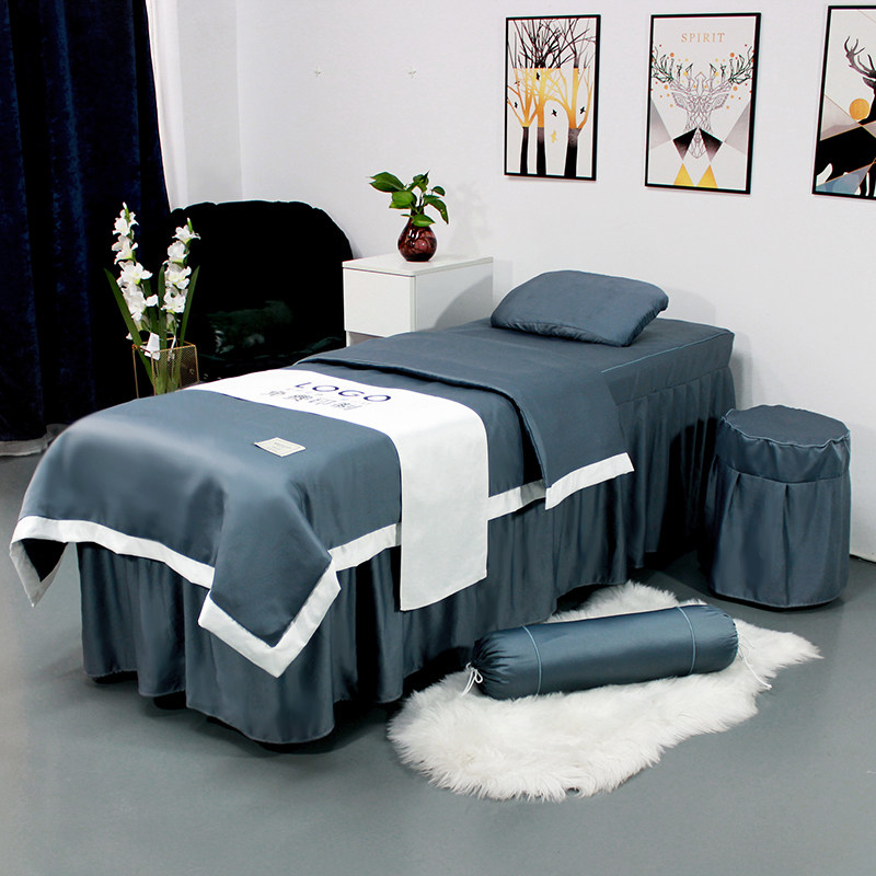 Pure color beauty bedcover four pieces of beauty salon special moxibustion beds free printed logo can be customized