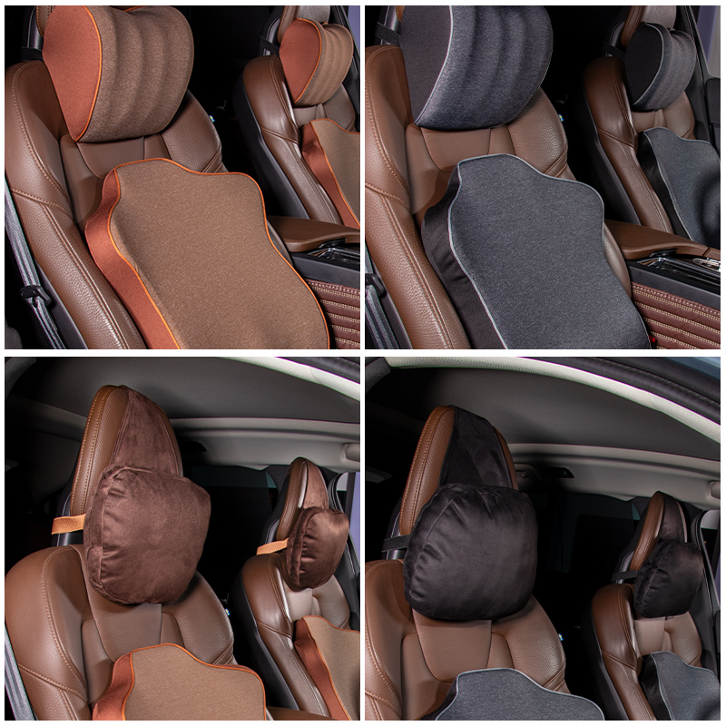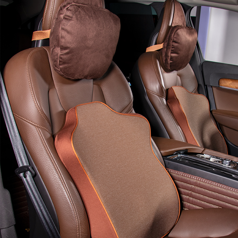 Memory foam gray lumbar pillow (one) Maybach brown headrest (one) memory foam brown lumbar pillow (one) Maybach gray headrest (one) GT brown headrest (one)