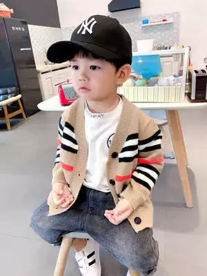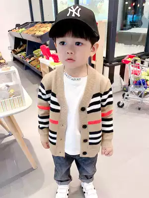 Small and medium children foreign pie knitted cardigan spring and autumn children's clothing boys and girls baby Korean shirt striped sweater coat tide