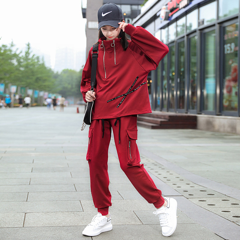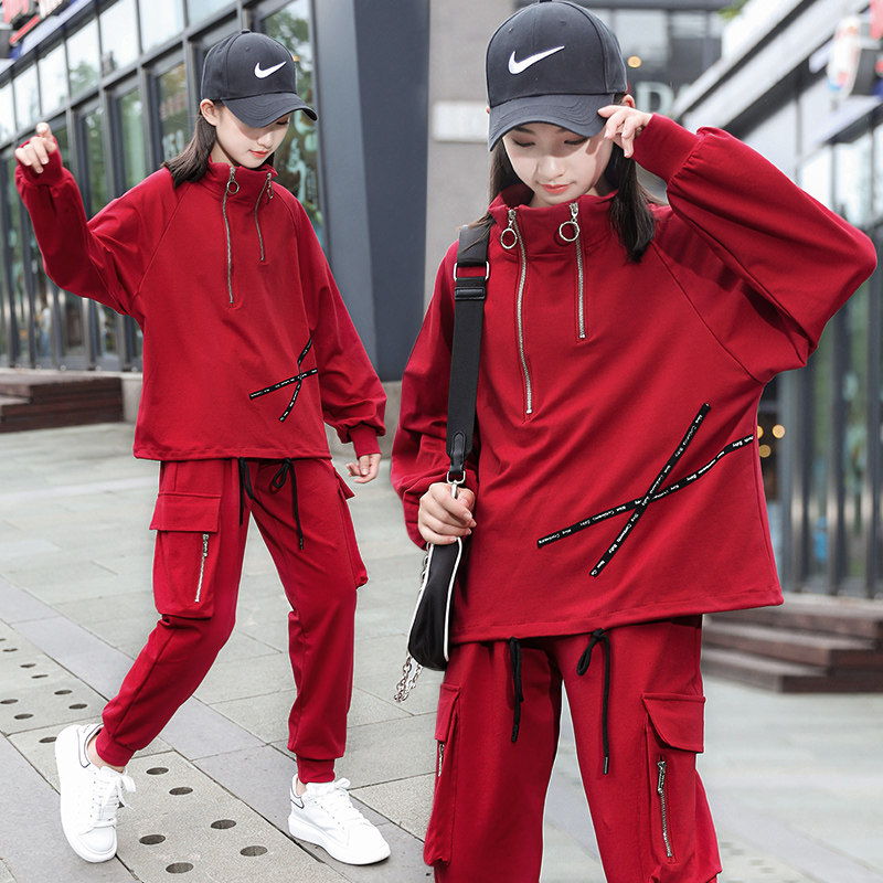 Women's great children's spring clothing suit 2022 new 12 The 12-year-old girl's trendy tennis red 15-year-old girl's clothing and two sets
