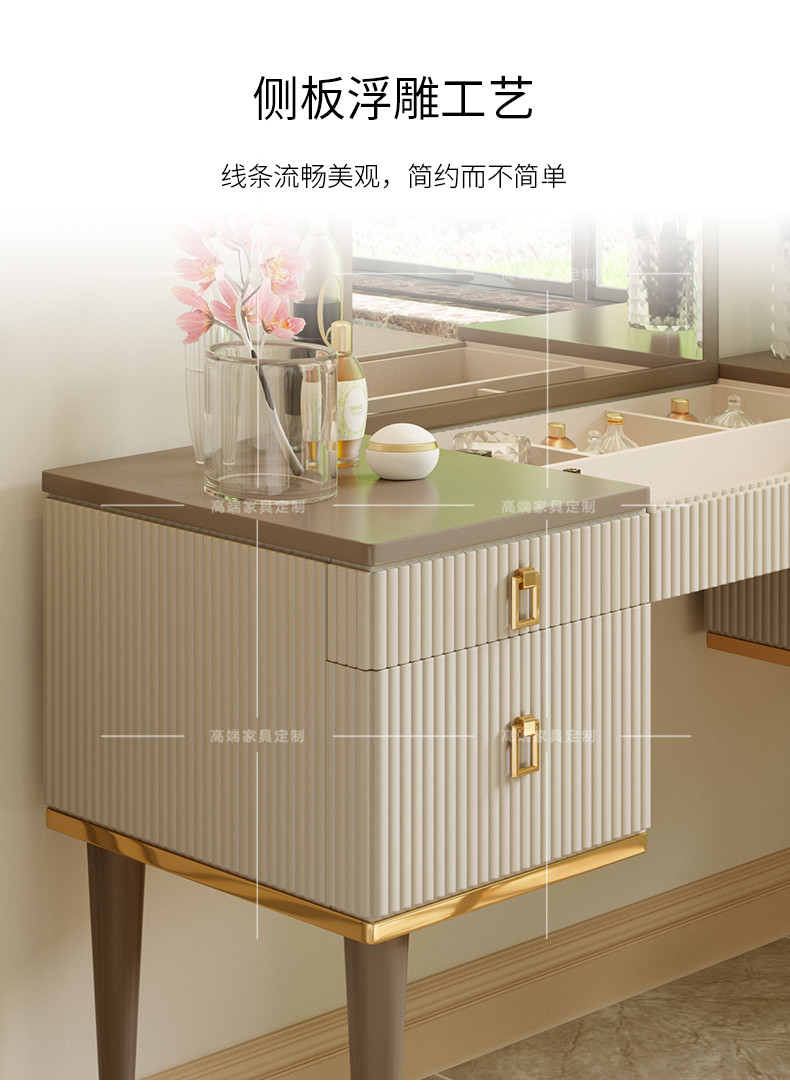Light luxury style dressing table bedroom dressing table flip metal desk storage integrated cabinet Hong Kong-style solid wood dressing table
