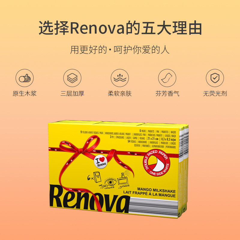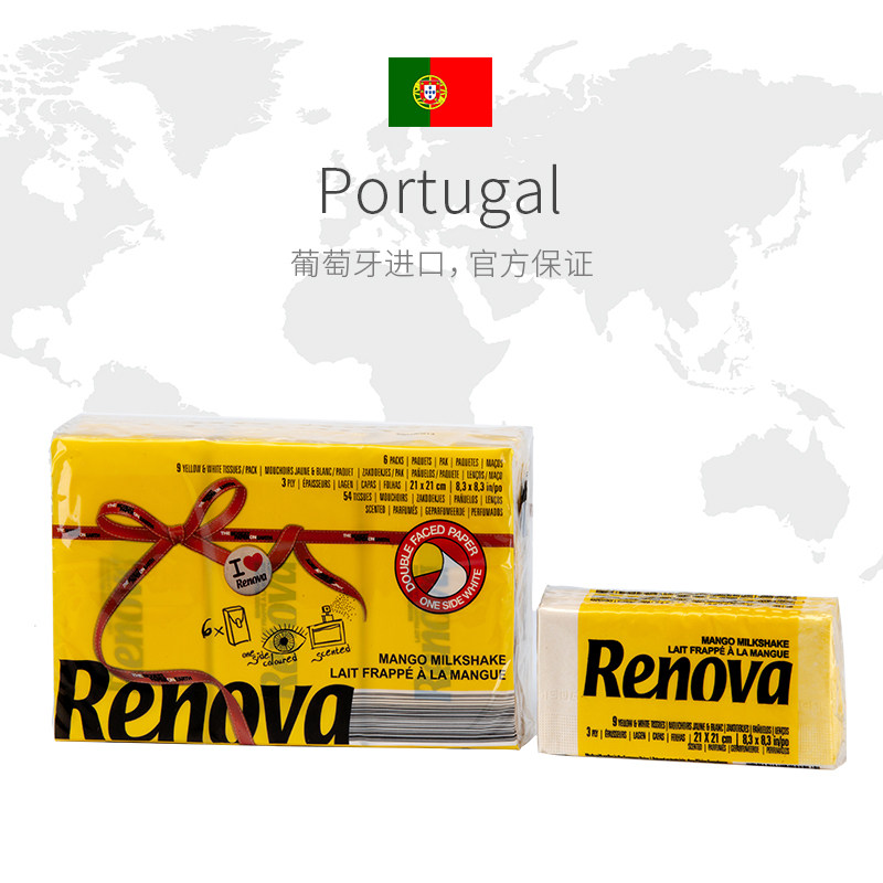 Renova Portugal imports yellow mango parchment paper handkerfuge with small packets of paper towels 5-30 packs