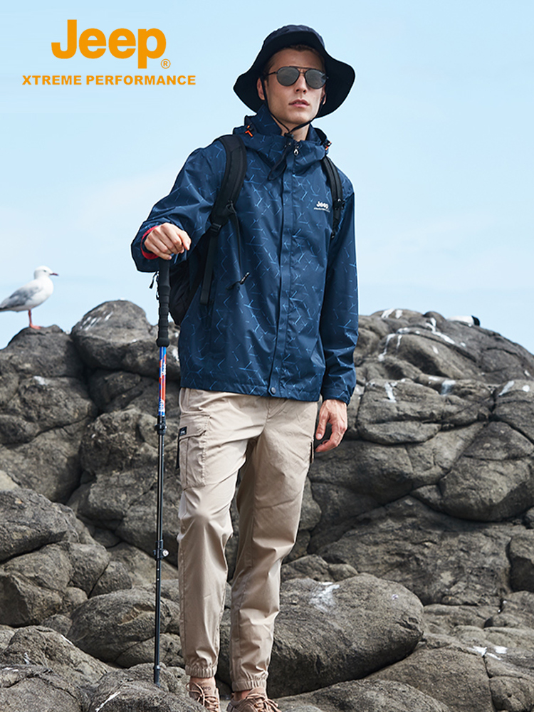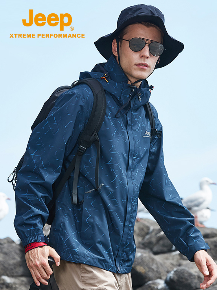jeep black jacket men's spring and autumn thin section outdoor single-layer large size mountaineering suit windproof waterproof rainproof jacket