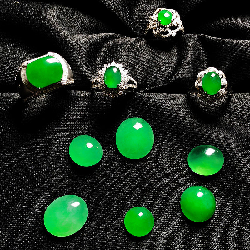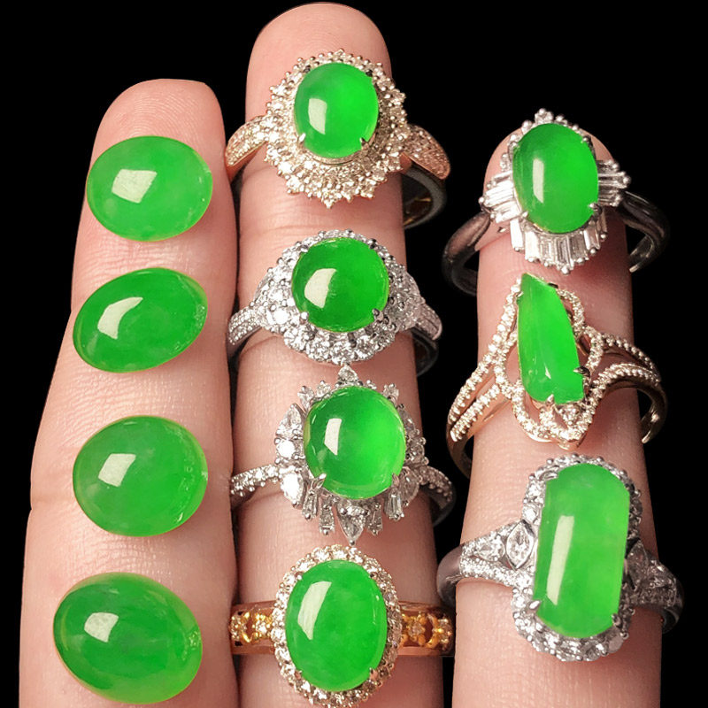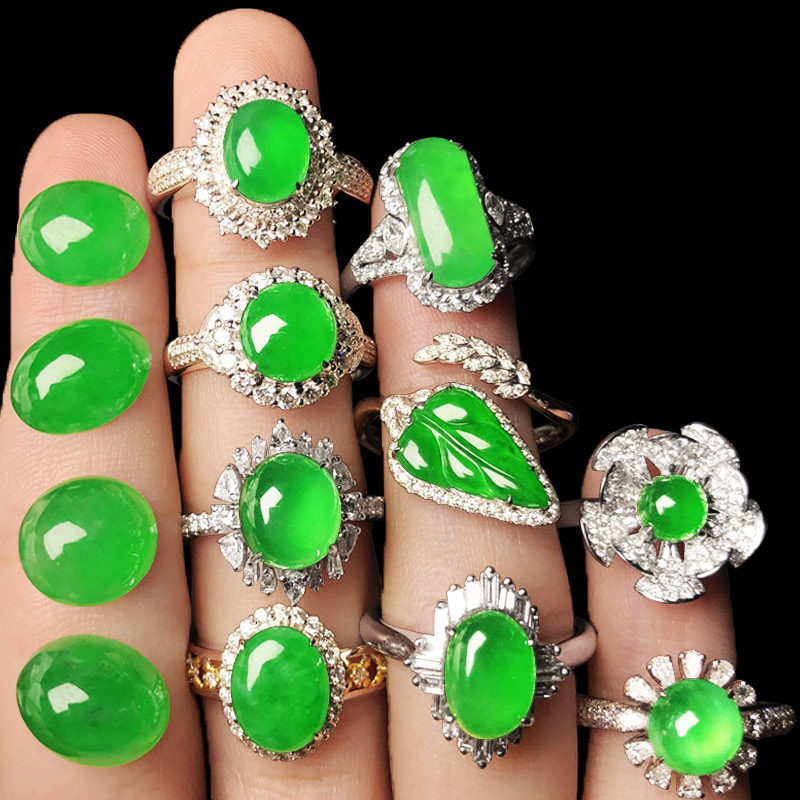 Jade ring face full of green small naked stone ice ring female Hao inlaid ring face male egg noodle pendant necklace not inlaid 18K
