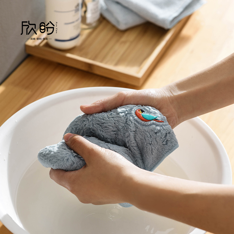 Xinpan thickened hanging coral velvet face towel Bathroom cleaning small square towel wipe hands absorb water without hair loss Household