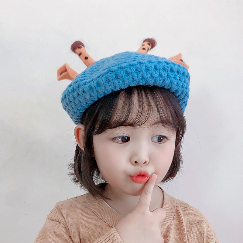 Children's beilee hat Little deer girl autumn winter hair line hat cute super cute painter hat baby fall thin cover beret