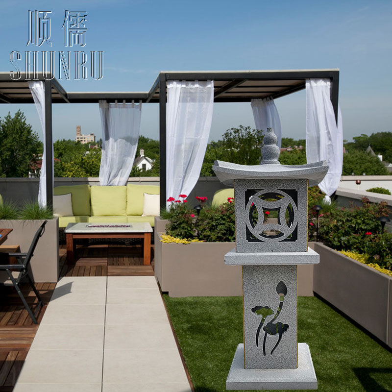 Stone carving solar stone lamp bluestone Japanese garden stone lantern natural stone too energy villa floor ornaments