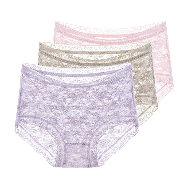 Chinami sexy breathable lace lady soft skin waist-to-hip triangle panties 3 strips