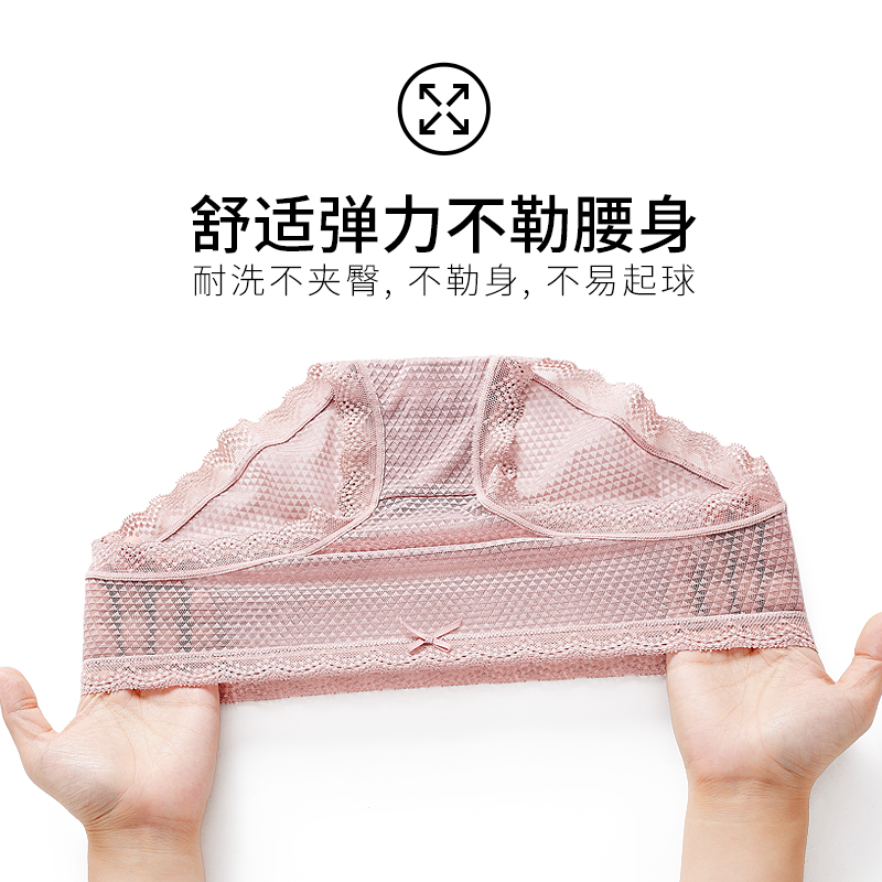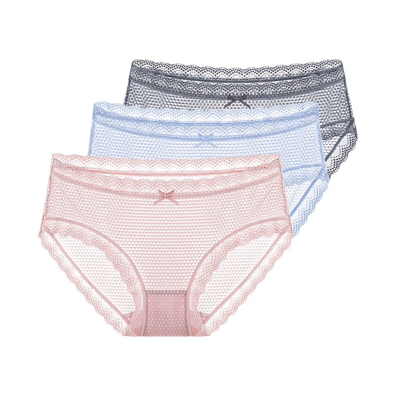 Chinami Sexy comfortable lace medium high waist flower lace Women's panties Bottoms 3 pack