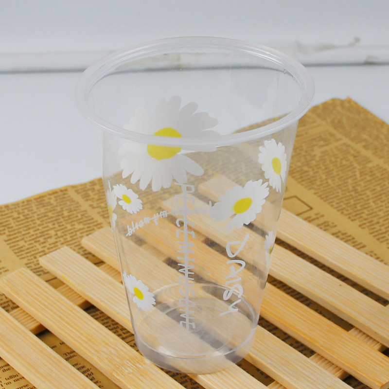 Small Daisy Milk Tea Plastic Cup Disposable Milk Tea Cup 1000 Cold Drink Cup 90 Caliber Packing Cup