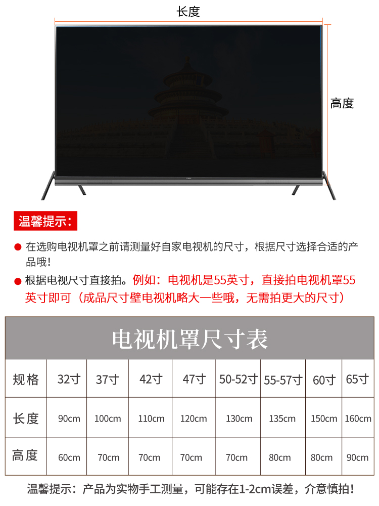 Liquid crystal TV cover Hanging desktop TV cover towels dust cloth art display cover 60 inch 65 inch TV