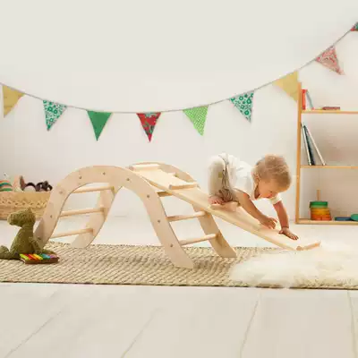 Baby climbing frame solid wood household small indoor children's slide combination baby sensory integration training bedside slide