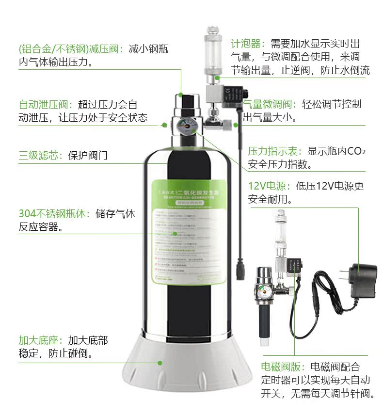 Zero degree aquatic plant fish tank carbon dioxide generator Aquatic plant tank co2 cylinder set DIY homemade carbon dioxide