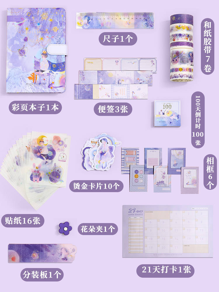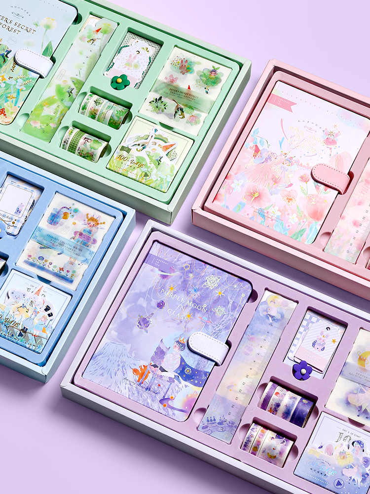 Internet celebrity hand ledger tool material full set simple ins wind hand ledger cute Japanese super cute girl heart little fairy student Douyin same hand ledger gift box diary notebook