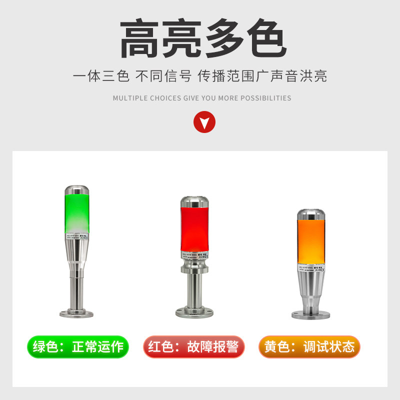 One-piece three-color alarm indicator LED sound and light alarm machine signal tower single-layer warning light 220V24V