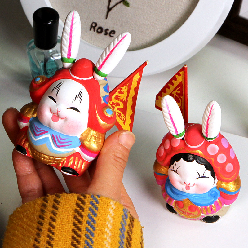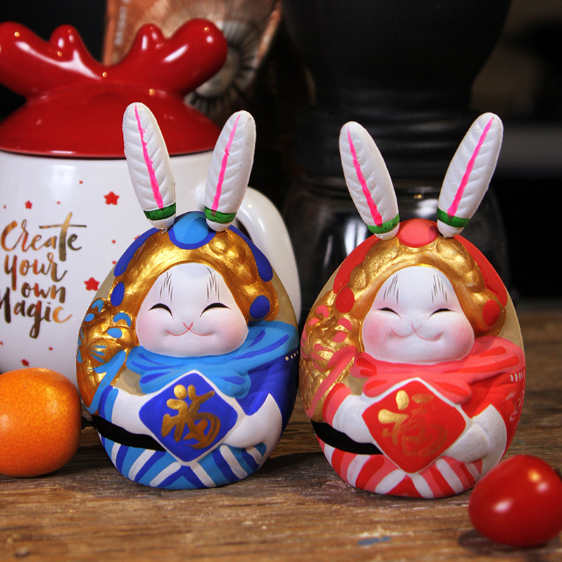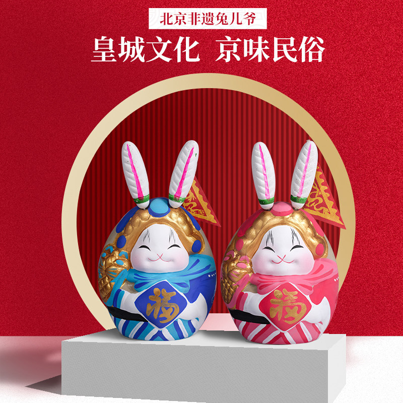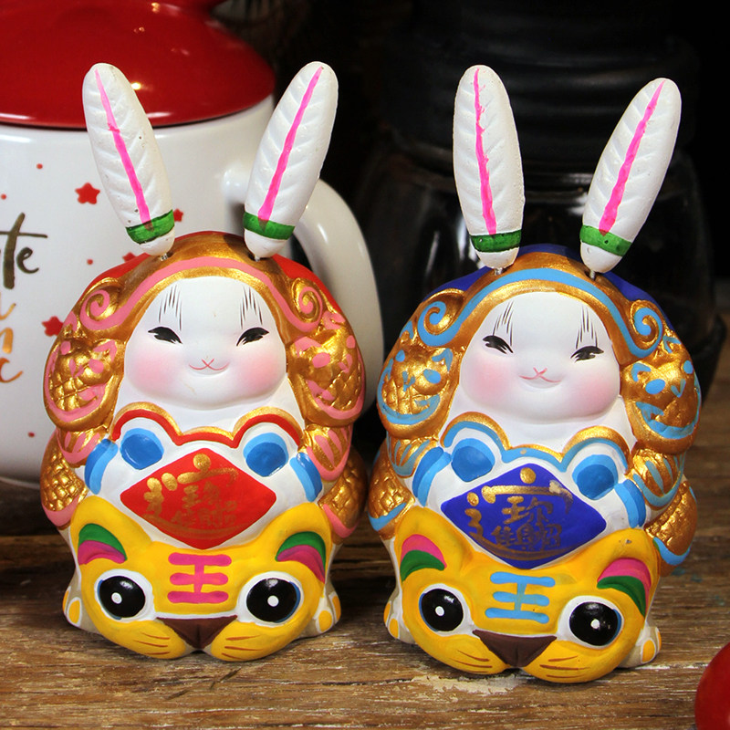 Jitufang Beijing Rabbit Lord Big Lucky Clay Sculpture Rabbit Lord paired ornaments 2023 New Year's special style with hand gifts
