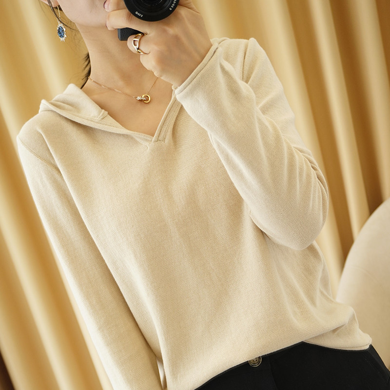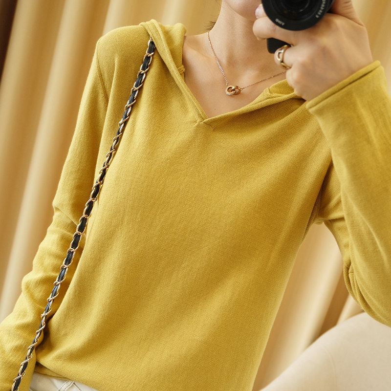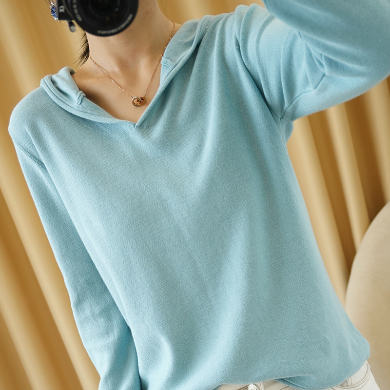 Early spring new long sleeve hooded pullover sweater women's cotton short top loose thin Joker thick cotton t hat shirt