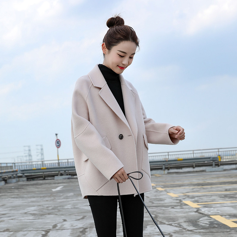 Double face cashmere big coat woman short style suit 2021 fall new popular Korean version small sub loose fur coat