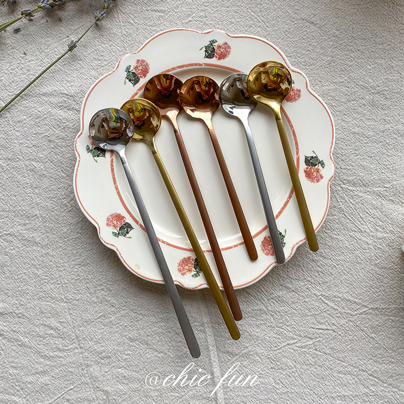 chic fun * Retro ins wind small spoon coffee spoon Creative cute stainless steel gold dessert spoon mixing spoon