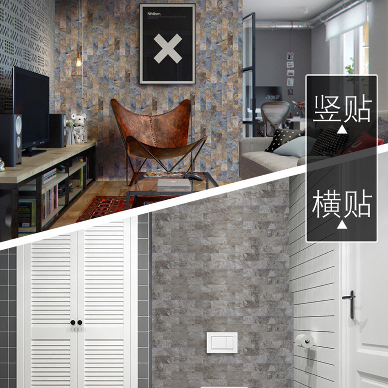 Retro rust color mosaic wall stickers tile background wall self-adhesive slate stone marble powder room living room European style