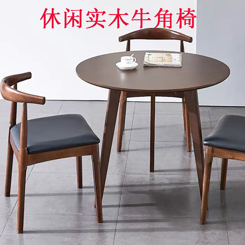 Nordic Modern Solid Wood Horn Chair Simple Hotel Cafe Desk Office Mahjong Household Soft Backrest Dining Chair