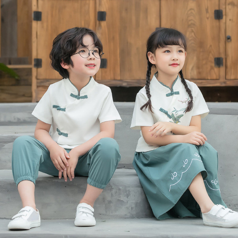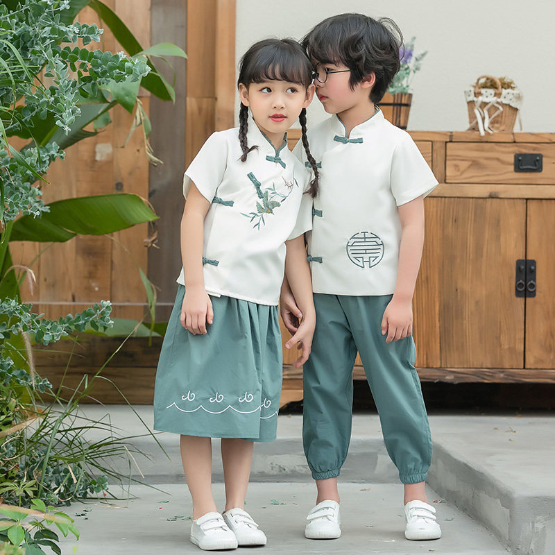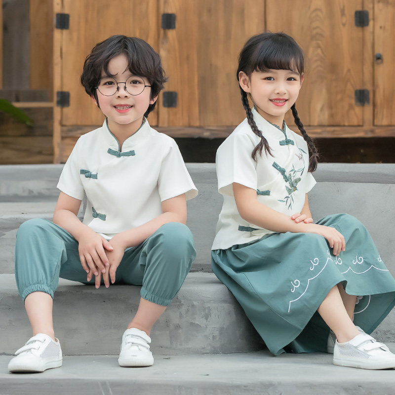 Kindergarten Garden Suit Summer Clothes Elementary School Uniforms Summer Banswear Suit China Wind Hanfu 61 Children Acting Out