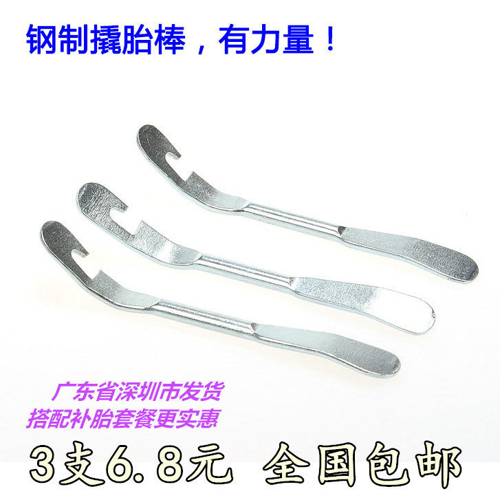Tire patch glue + 3 crowbars + tire chips