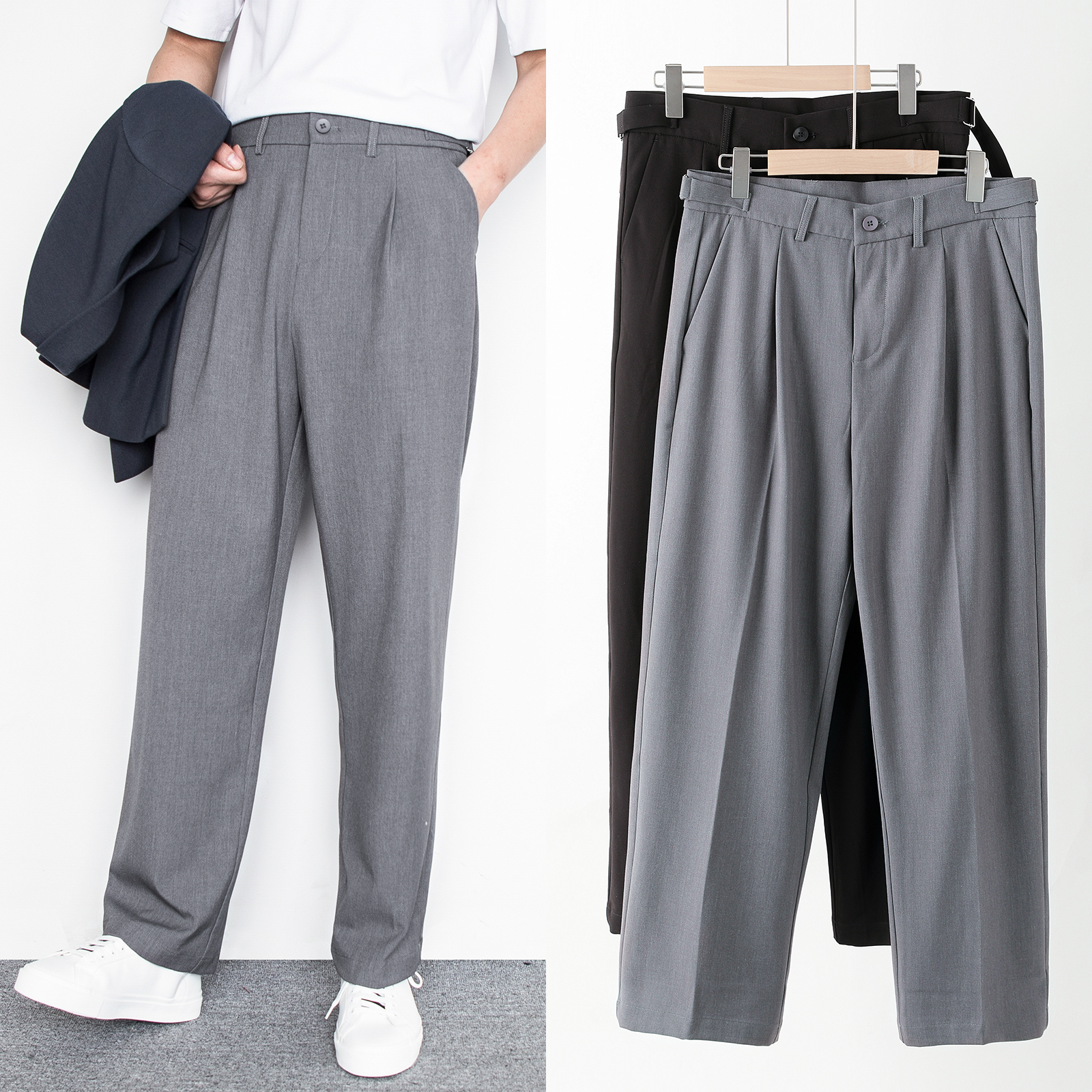 Suit pants Straight men's pants Summer loose hanging casual wide pants Profile mopping dad drop men's pants