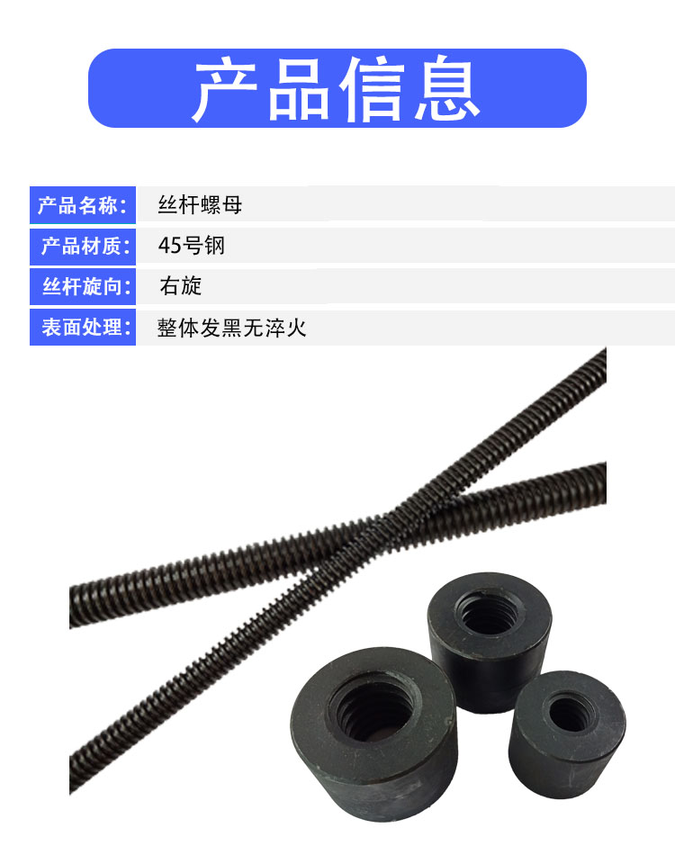 Trapezoidal wire rod nut screw rod T type screw rod coarse tooth Tr8 1012 14 14 18 18 20 22 22 textured hair black
