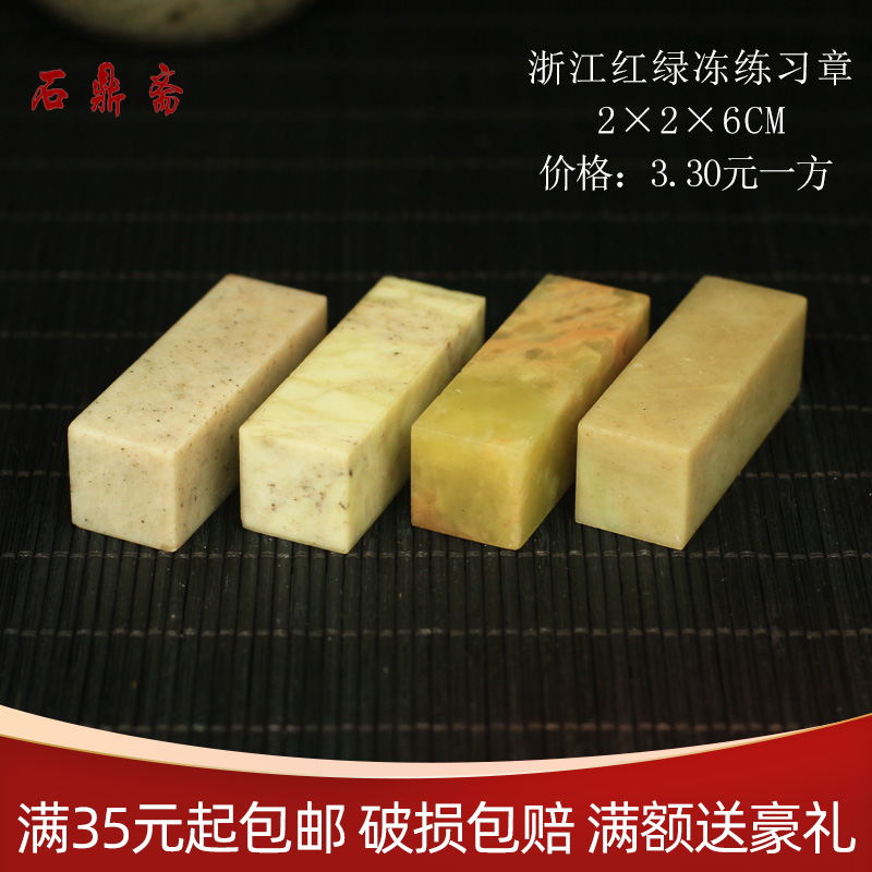Zhejiang Red Green 2*2*6CM Stamp Stone Sheet Keshan Stone Practice Seal Seal Seal Book Painting