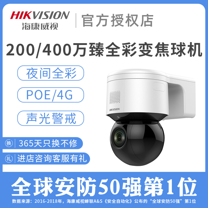 Hikvision surveillance camera lens is fully 3 inch 200 million 4G interspeech sound and optical alarm smart ball machine