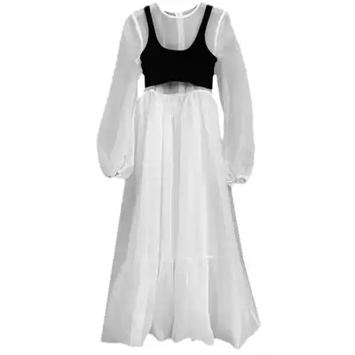 Autumn 2021 new female thin white fairy dress thin waist design sense niche temperament long skirt