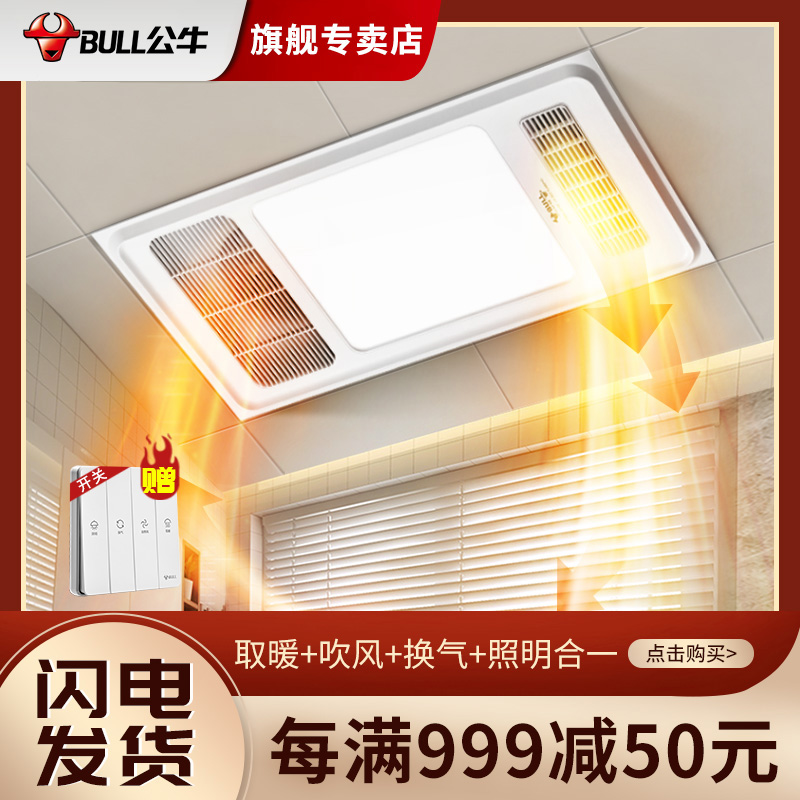 Bull Warm Air Blower Warm Bath Bully Light Exhaust Fan Ventilation Lighting Integrated Bathroom Warm Air Blower Four All-in-one Integrated Ceiling