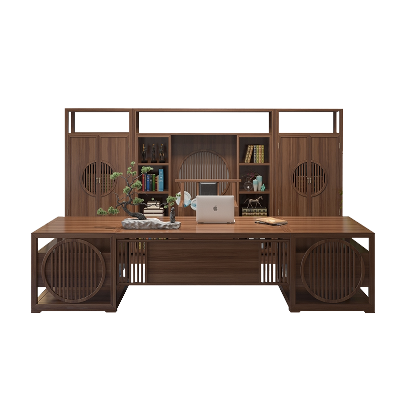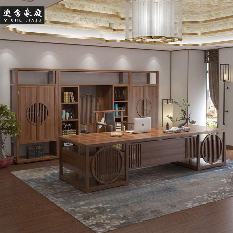 New Chinese style solid wood boss table and chair combination president table office chair simple modern chairman walnut furniture