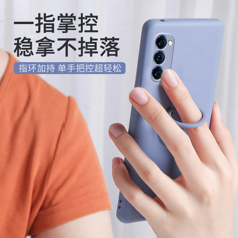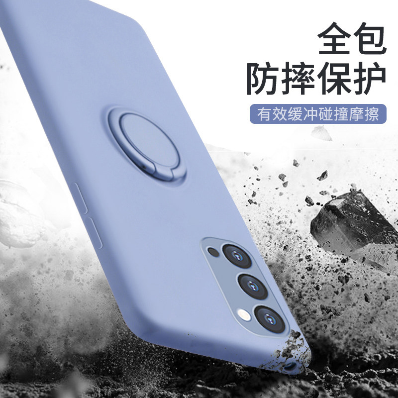 opporeno4 mobile phone protective shell liquid silicone reno4pro protective shell with ring buckle