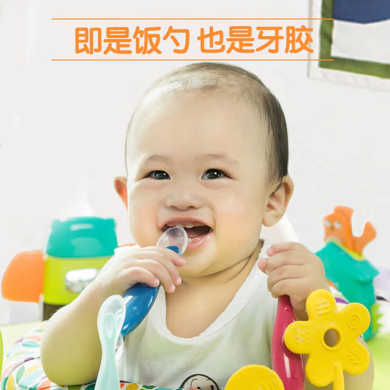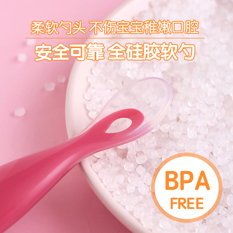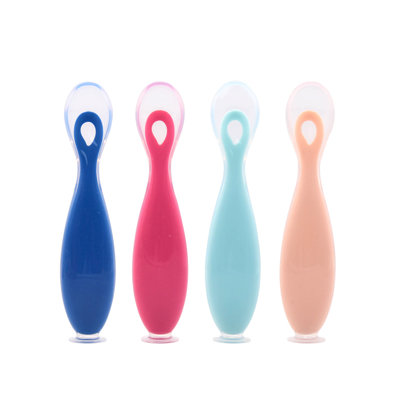 Infant silicone gel soft tablespoon baby deputy food rice burnt small spoon newborn feeding water feeding soft head with suction cup cutlery