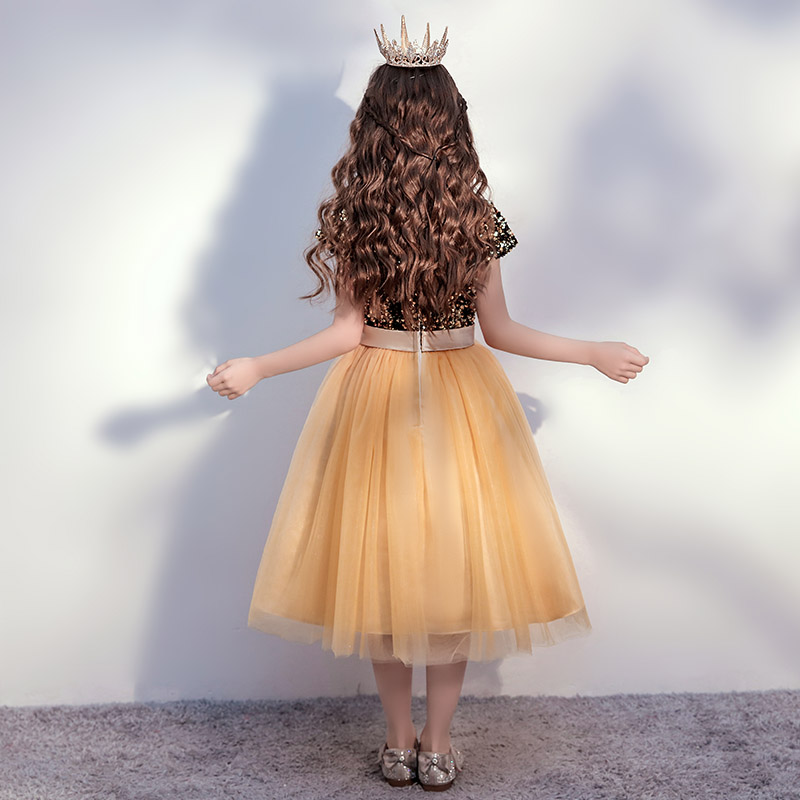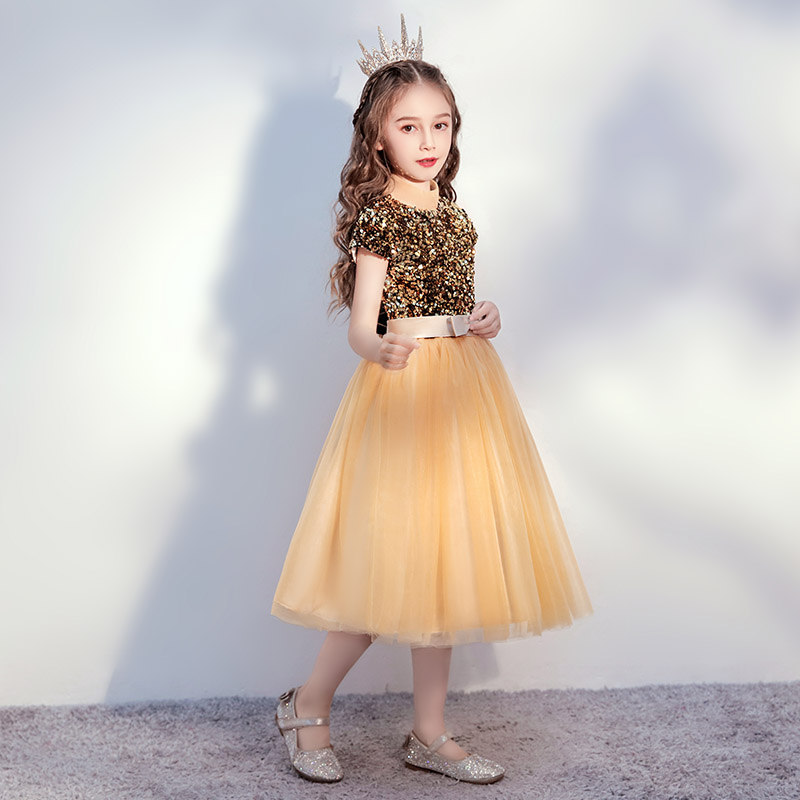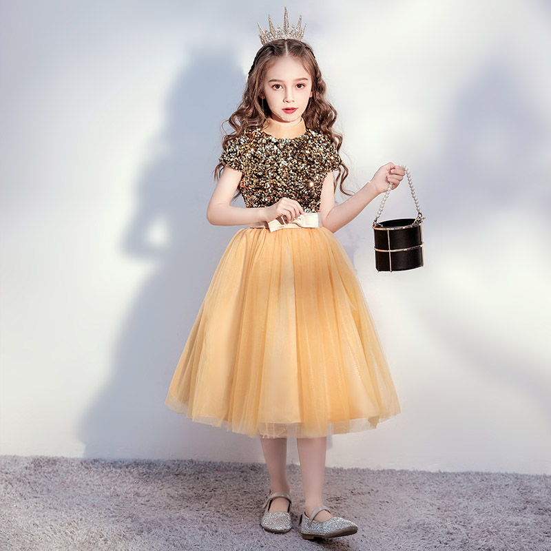 Golden Girl Gown Princess Dresses Dresses Big Boy Walking Show Host Ocean Air Evening Gown Children Piano out for autumn