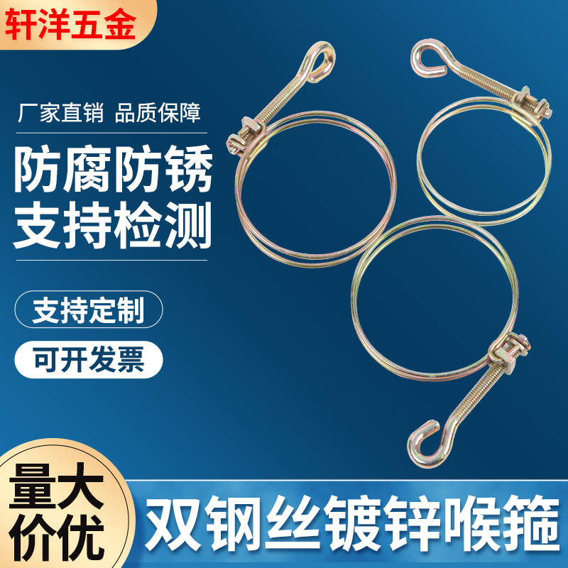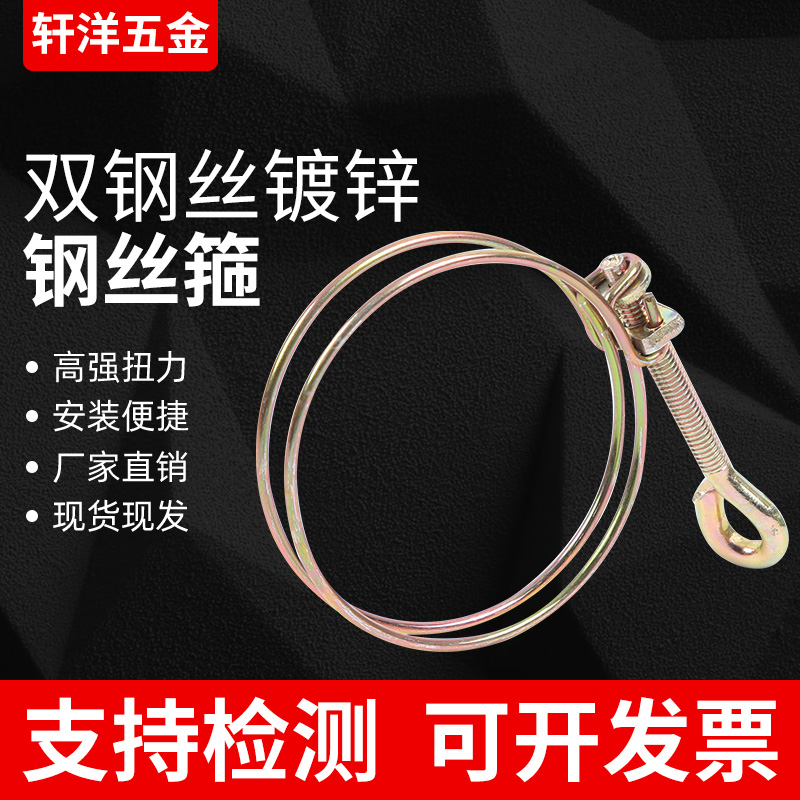 Iron-galvanized double steel wire hoop with handle throat hoop rubber tube hoop tubing card fixing gas water pipe hoop clamp
