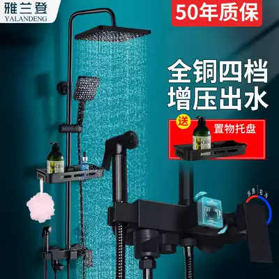 Black shower set Household all-copper bathroom shower nozzle Booster shower faucet Bathroom shower faucet