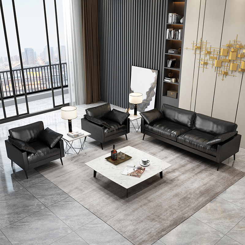 Office sofa minimalist light and luxurious business reception guest trio with black office sofa tea table combined leisure