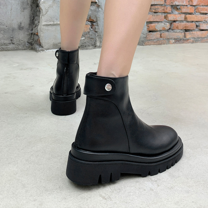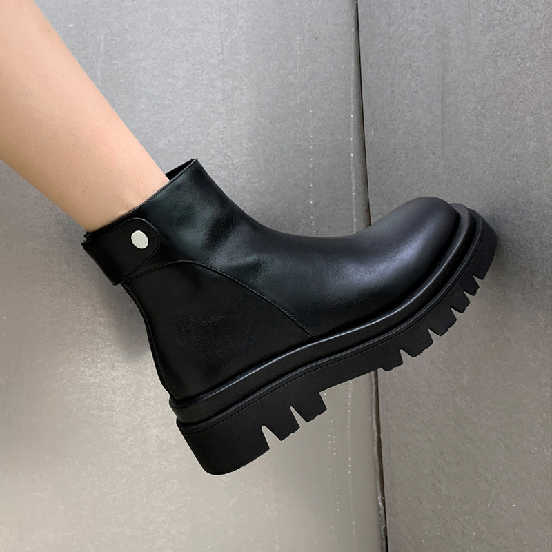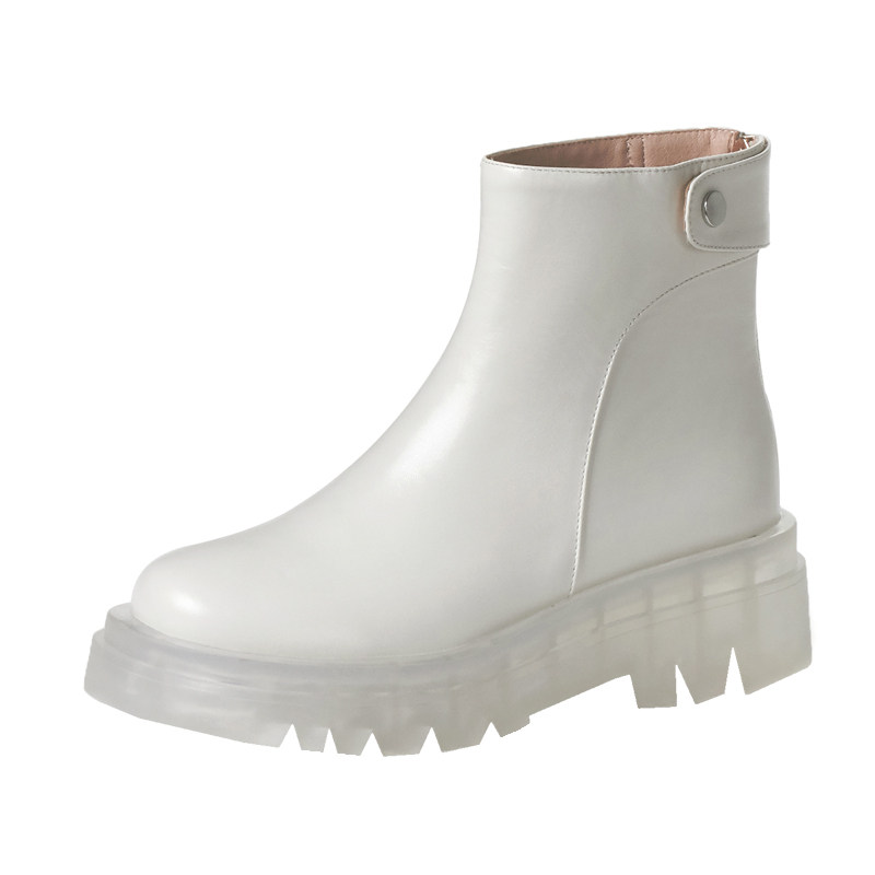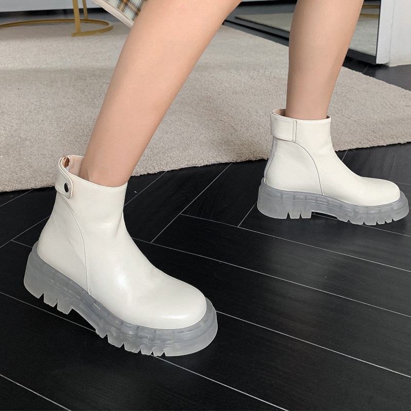 Jelly bottom white short tube knight boots women 2021 autumn and winter leather muffin Martin boots thick-soled fashion boots wild tide