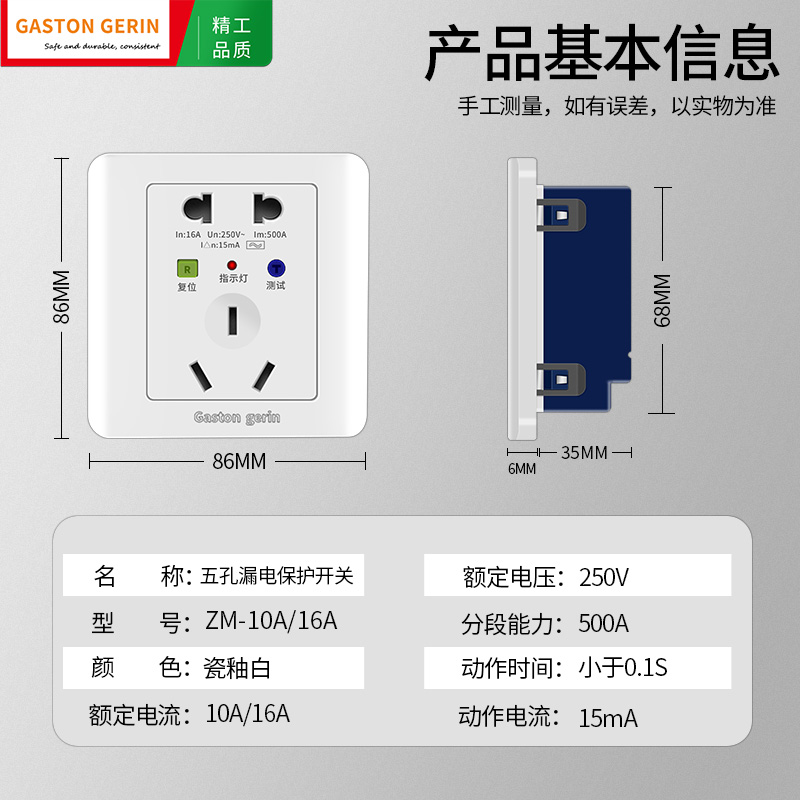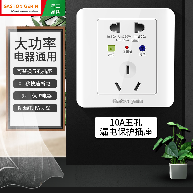 Gaston gerin switch five holes 16A with leakage and socket leakage protection switch electric water heater air conditioning 10A